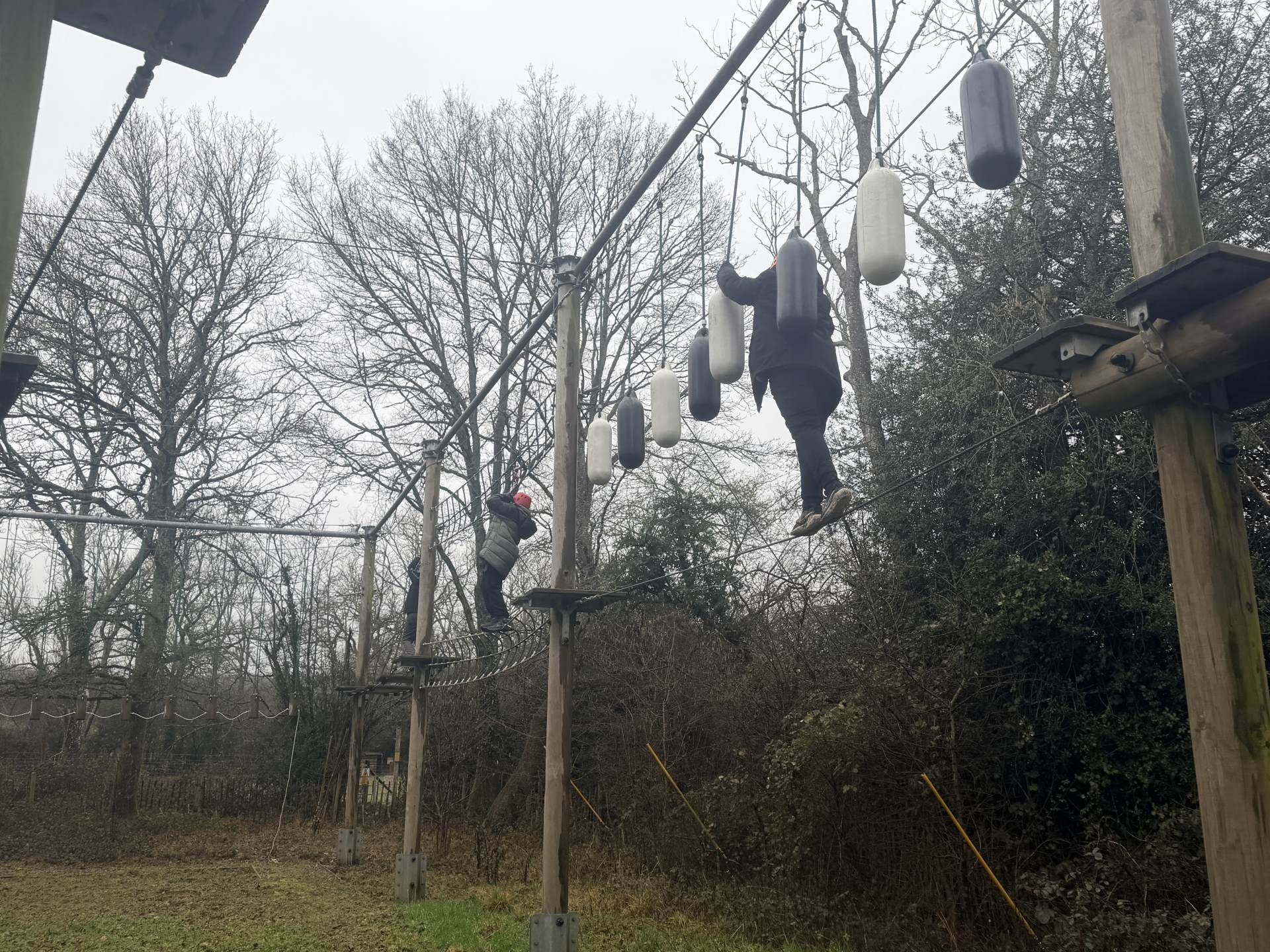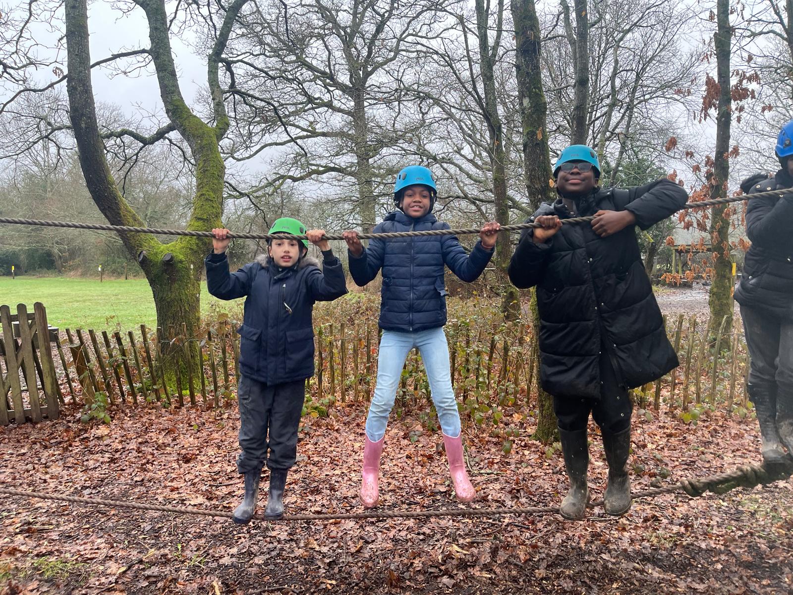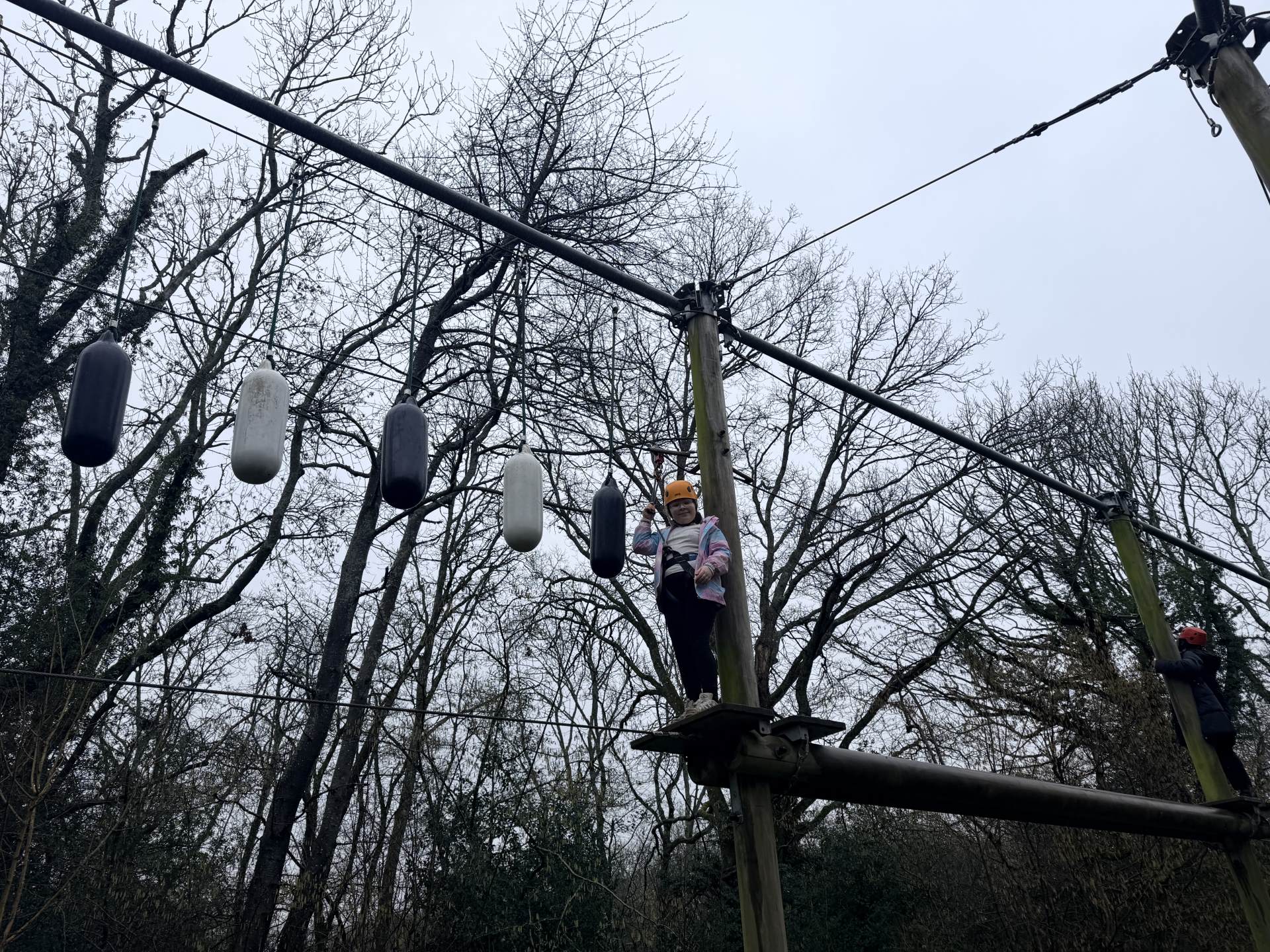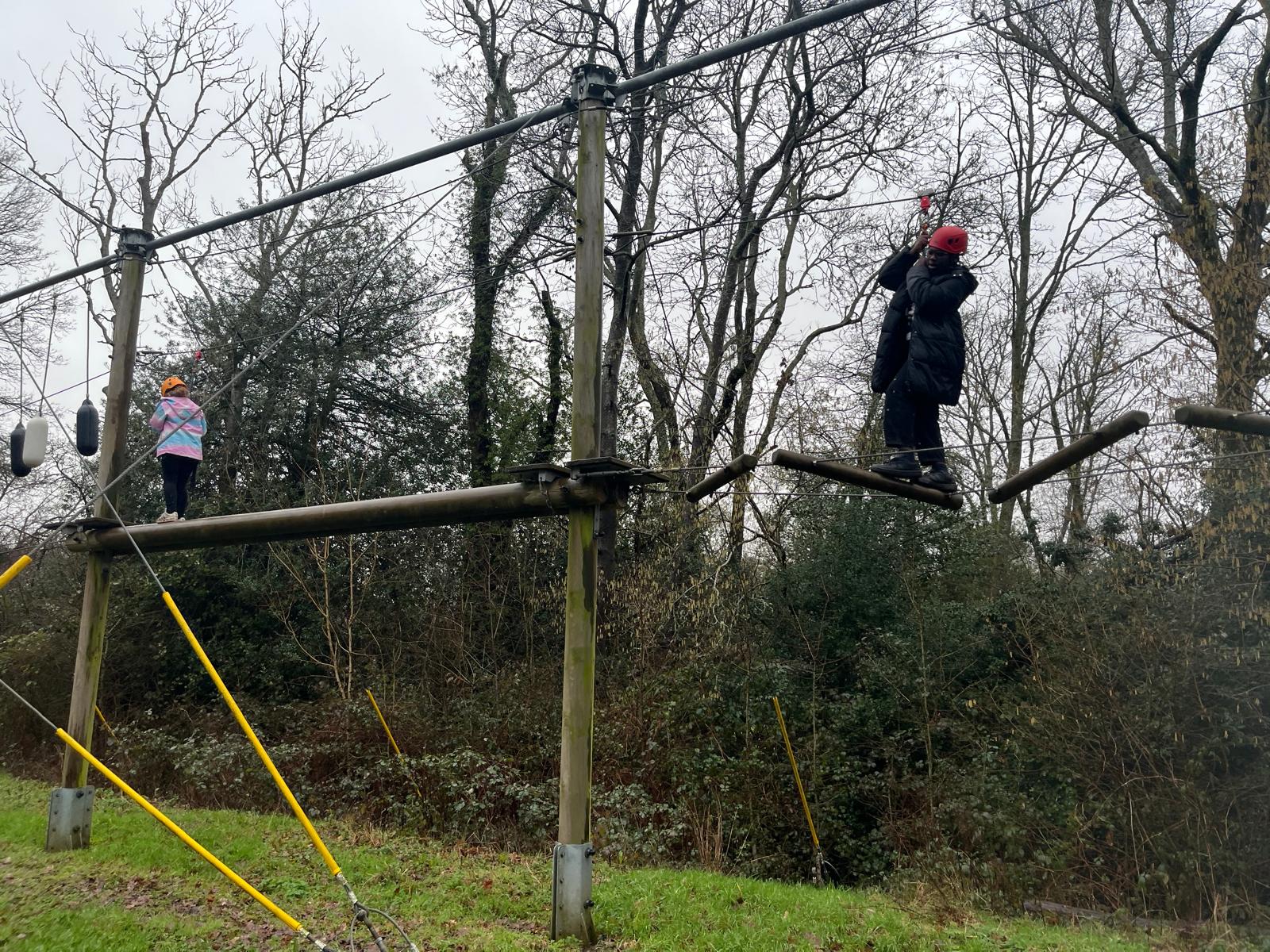 We split into our groups and battled against the rain to trek through the mud to the Challenge Course first. We had to work as a team to complete a tricky set of tasks without touching the ground. It was especially hard in the rain, but we managed to work together to move large planks across mud to find our way through the obstacle course. We loved pushing ourselves to think creatively to find solutions to new problems.