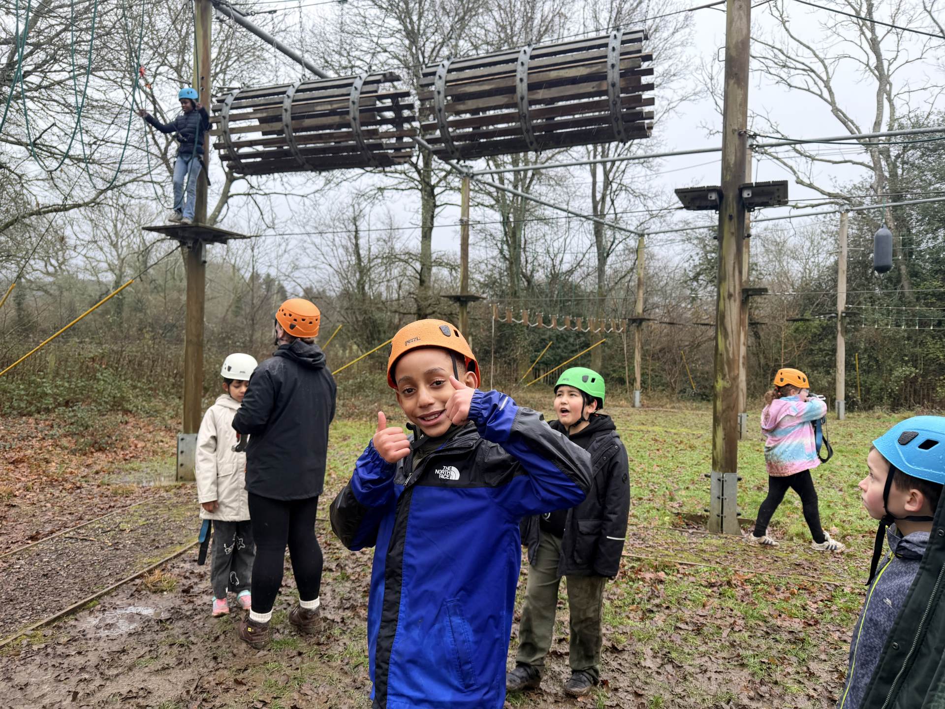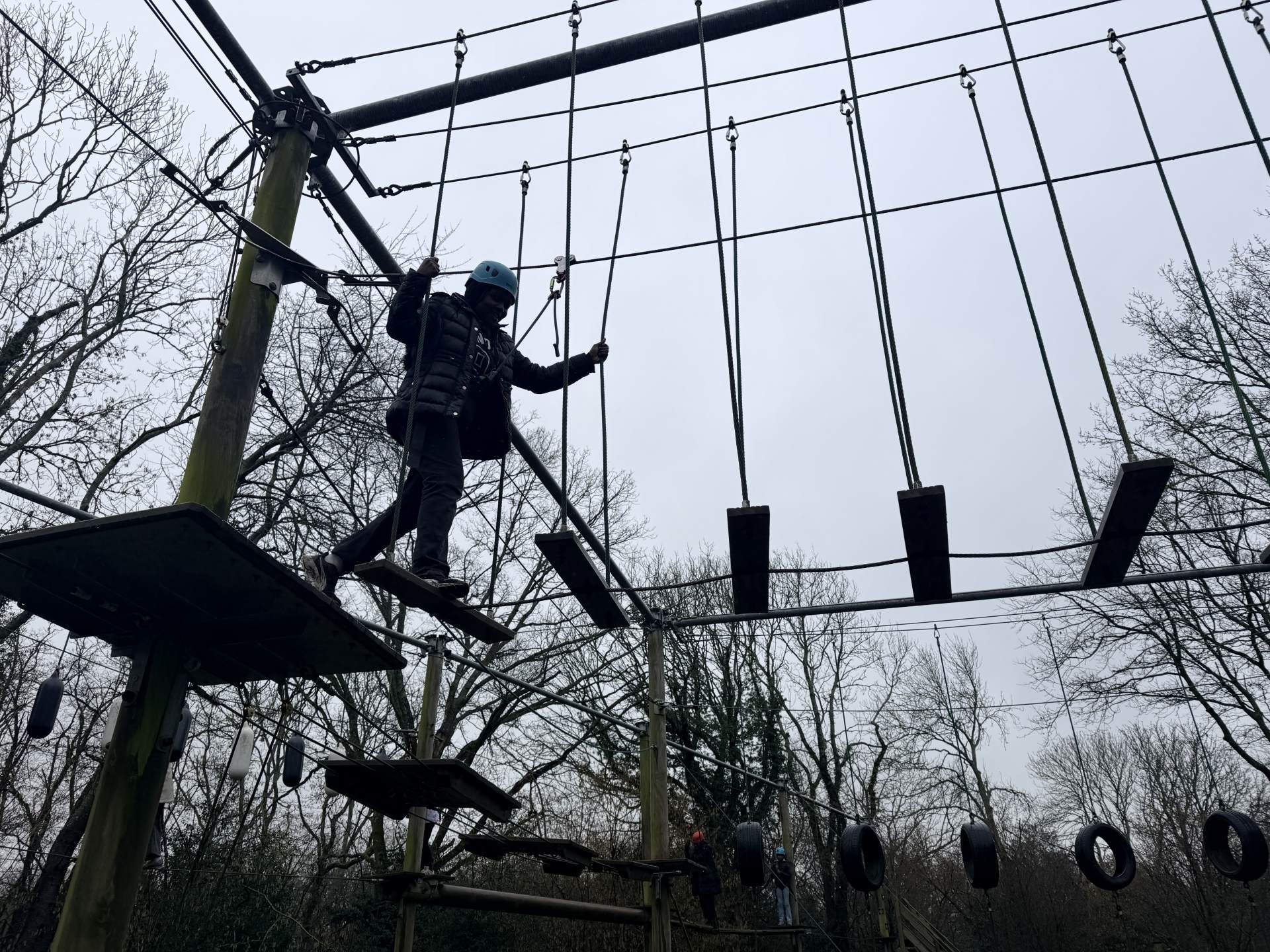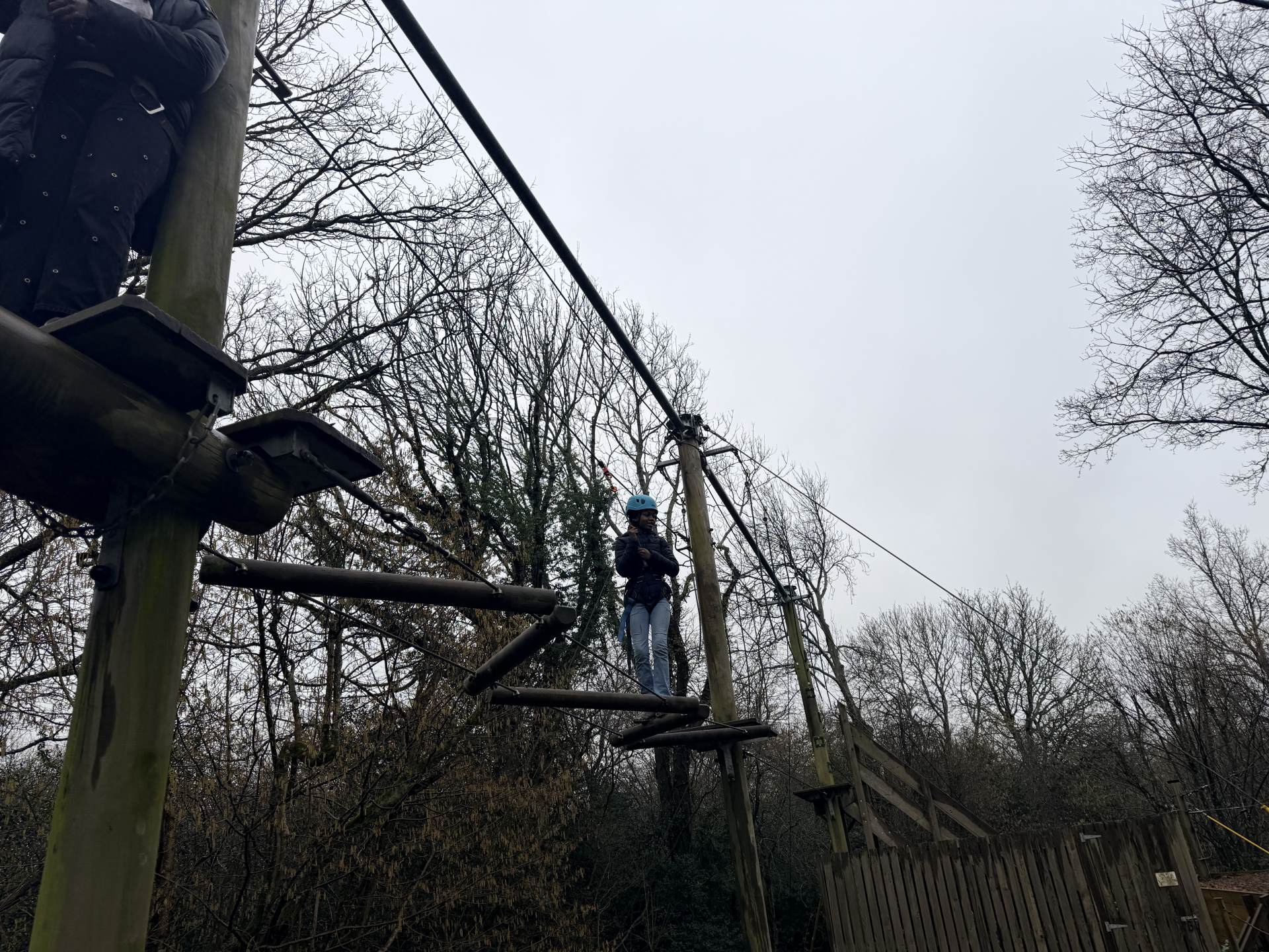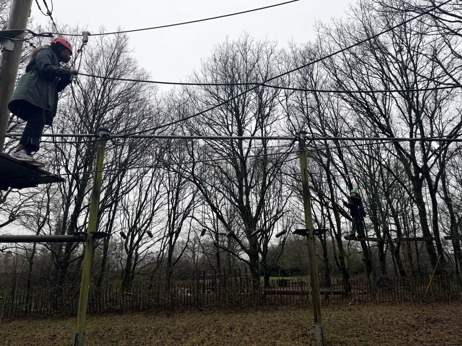 We split into our groups and battled against the rain to trek through the mud to the Challenge Course first. We had to work as a team to complete a tricky set of tasks without touching the ground. It was especially hard in the rain, but we managed to work together to move large planks across mud to find our way through the obstacle course. We loved pushing ourselves to think creatively to find solutions to new problems.
