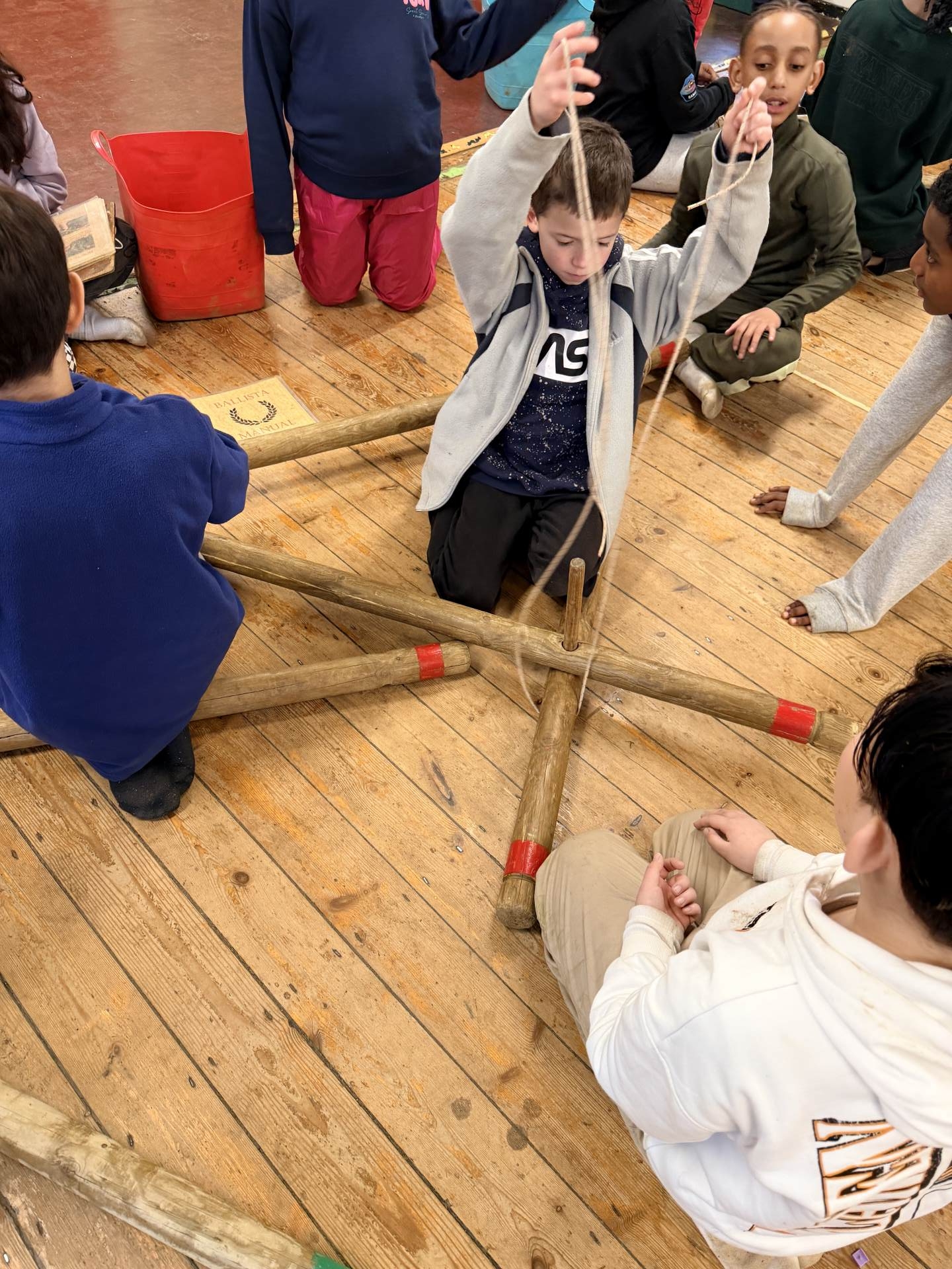 In the afternoon, we opted for an indoor challenge in the form of a catapult challenge. We worked in teams of 8 to build a catapult from wooden poles. We then had to aim bean bags at foam towers to knock them down. We were pretty handy with a catapult! It was great fun.