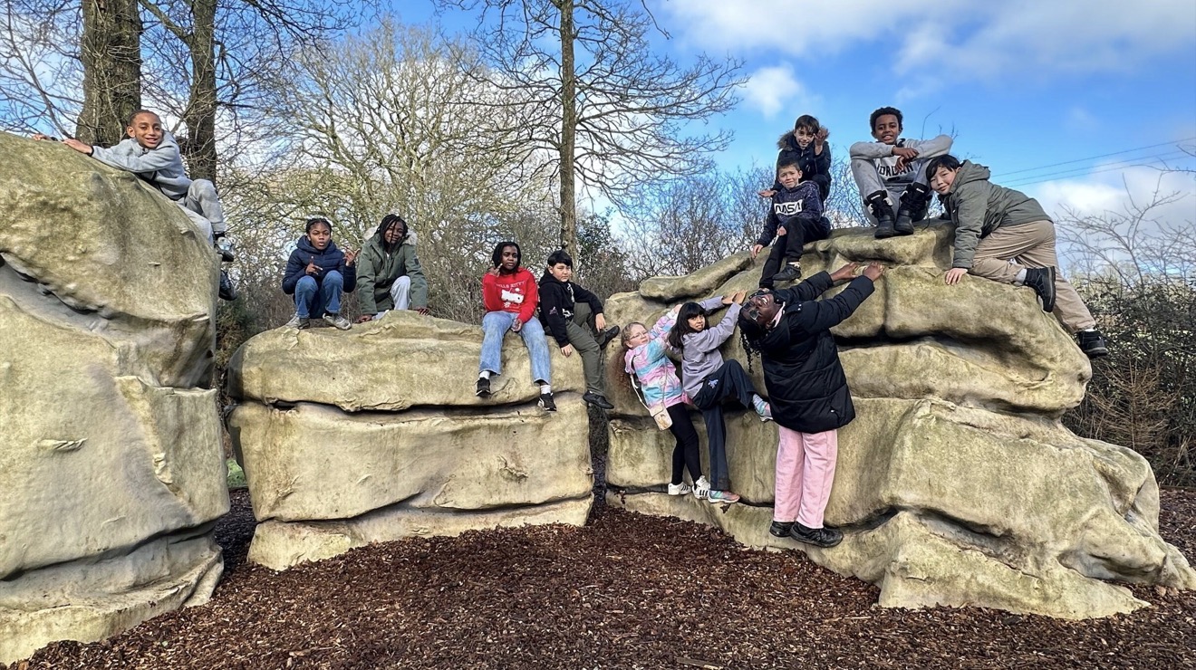 Today was VERY busy, but also really fun. First, we did bouldering, which is where you climb up huge man-made rocks. Some of them felt really high and a bit scary at first, but everyone tried their best and cheered each other on.